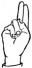 На ћирилици написано МАХАИЛО ДАНГУБИЋ састоји се из 15 слова [?]. Исписано ћириличном једноручном азбуком за глувонеме: